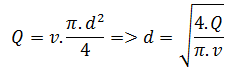 Để lựa chọn được kích thước trong của ống thuỷ lực, ta có công thức: